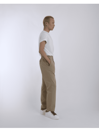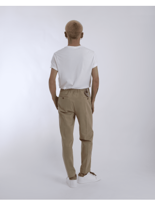 Tailored trousers in cotton with a tapered fit and subtle pinstripe texture, merging casual comfort with refined detailing. Finished with a clean waistband and side pockets for a versatile, all-day wear.