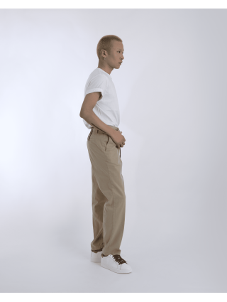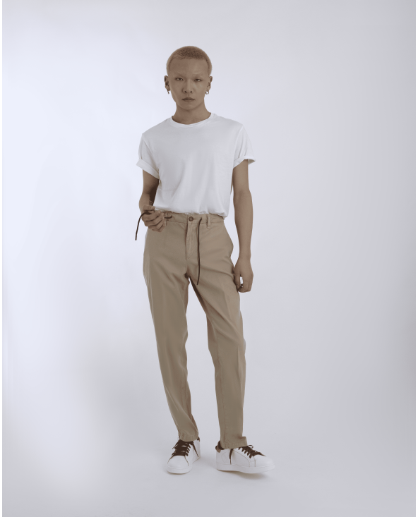Drawstring trousers in cotton with a relaxed tapered fit, merging tailored lines with casual ease. Crafted with a clean front, discreet pockets, and adjustable waist for all-day comfort.