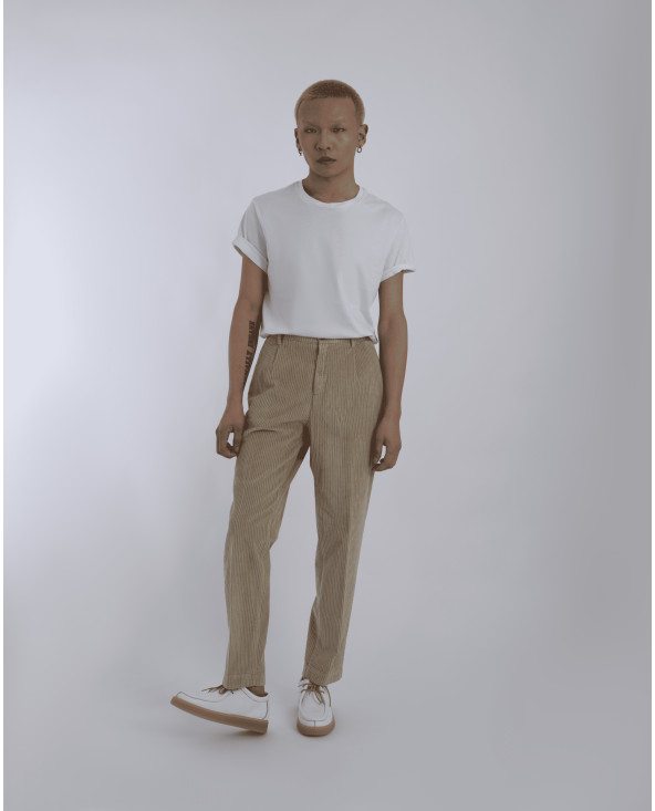 Corduroy trousers with a relaxed straight-leg cut, blending classic texture and modern tailoring.