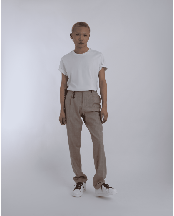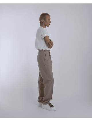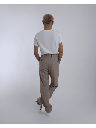 Flat-front tailored trousers in a straight-leg cut, crafted from a smooth woven fabric for a refined drape. Features a clean waistband, side and back pockets, and a versatile silhouette that transitions effortlessly between casual and smart styling.